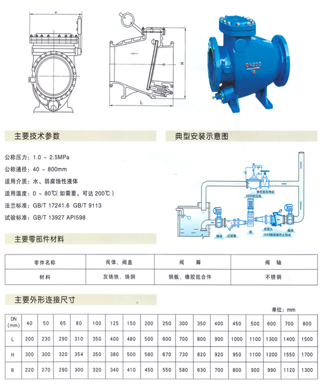 HH44XTH HH44ZX微阻缓闭止回阀用于给排水管道,安装在水泵出口处用来防止介质逆流和消除破坏性水锤,并能有效地减少阀门关闭水锤压力,可保障管网安全运行。HH44XTH HH44ZX微阻缓闭止回阀具有阀瓣轻、开度大、节电效果显著,流体阻力小,水锤消除机构设计新颖,密封性能稳定可靠、耐磨损、使用寿命长、运行平稳、无振动、无噪声等特点。